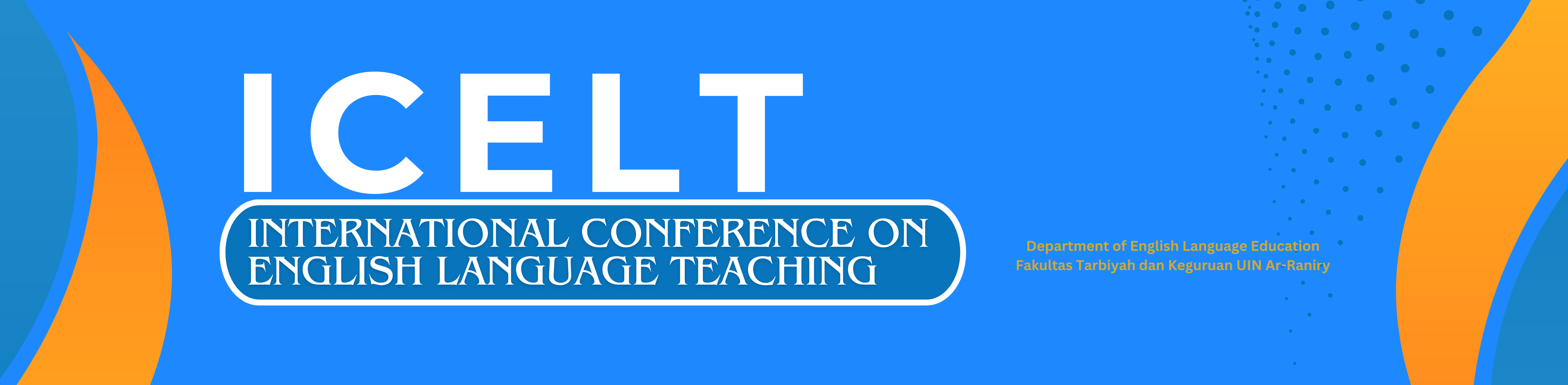 Description: Proceedings of the International Conference on English Language Teaching (ICELT) are the proceedings of a biennial conference organized by Department of English Language Education Fakultas Tarbiyah dan Keguruan UIN Ar-Raniry, Banda Aceh, Indonesia. These proceedings are created as a forum for academics and practitioners to disseminate research results in the form of scientific articles. We also invite speakers, both academics and professionals, to share and exchange knowledge.