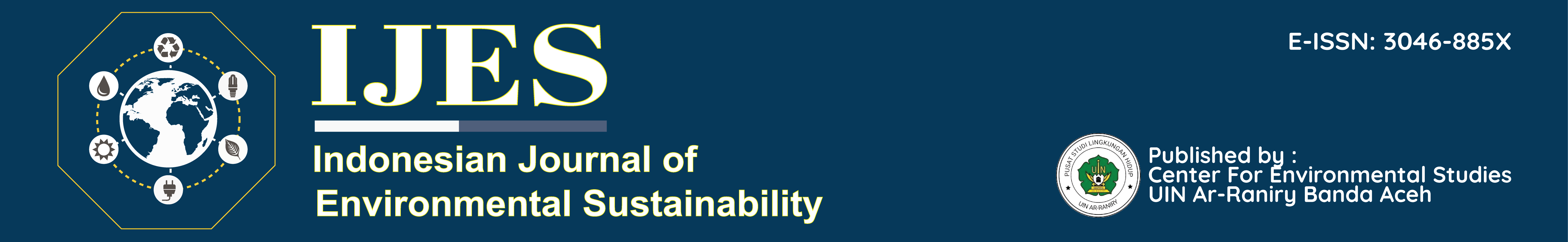 IJES : Indonesian Journal of Environmental Sustainability is a journal published by Center for Environmental Studies Universitas Islam Negeri Ar-Raniry, Banda Aceh, Indonesia. The journal publishes research articles, conceptual articles, and book reviews of environmental studies and sustainability development issues (See Focus and Scope). The articles of this journal are published 2 times a year; June and December.